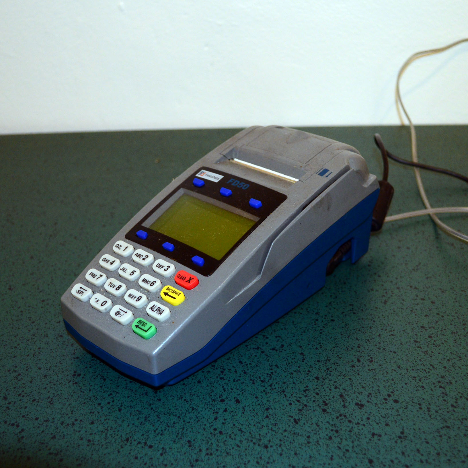 NOTE: You may connect a standard telephone or fax machine to the other modular jack on the back of the terminal (leftmost blue-colored jack with picture of telephone). ... Get Doc